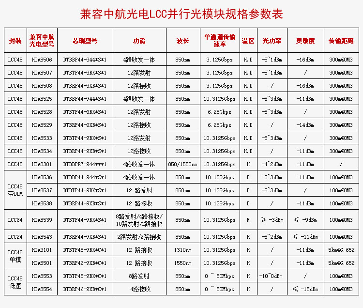 螭虎LCC48 10G 850nm八路接收尾纤可插拔模块类别:LCC光模块 -