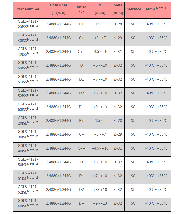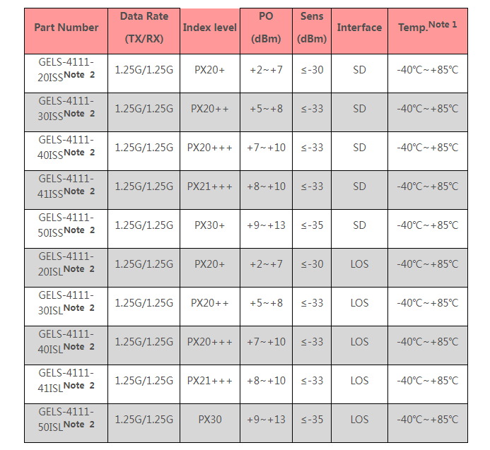 Table-1-Order Information (Standard: -40℃~+85℃)